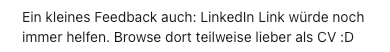 - I’d also get my former CEO to write a quick testimonial about prior countries I’ve opened (eg. “We hired Dominik to build the entire international business for Sdui. He opened 7 markets for us, 5 of which we’re still active in – and today, the international business contributes significantly to our top-line growth.”) → This also gives a potential hiring manager an instant reference they can approach to verify.