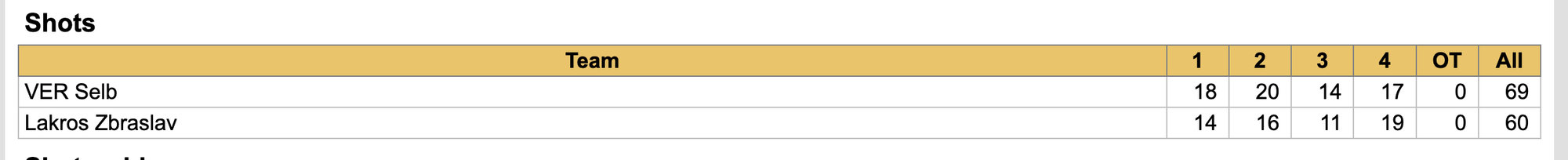 Jizni Mesto had higher quality shots here, but we could’ve easily made up for the difference by simply shooting more on goal (we had 23 shots wide, the other team only 12).
